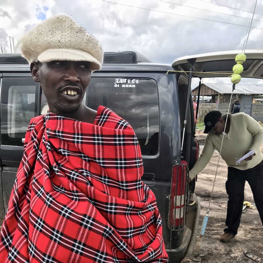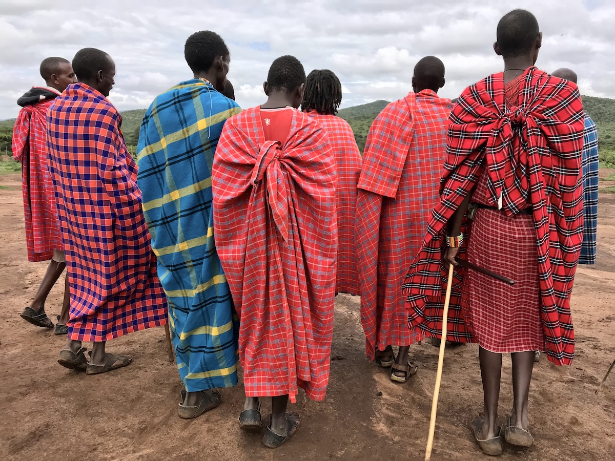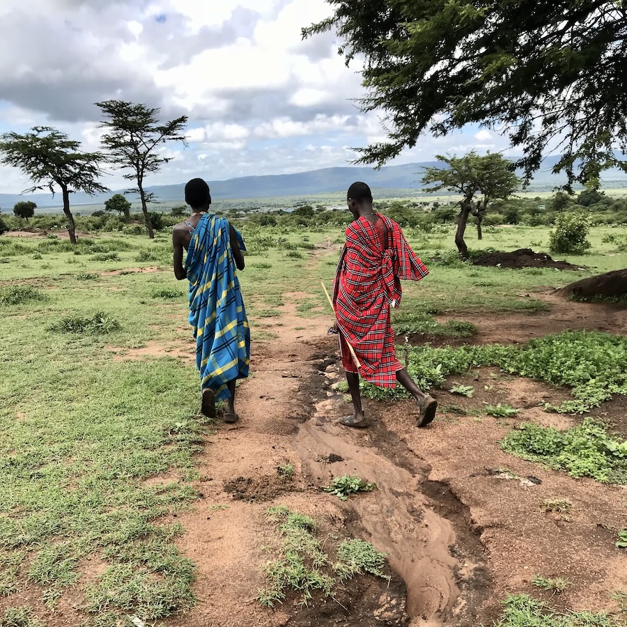 After walking and talking for hours, the end of our time with the Maasai chiefs was here. Suddenly the ‘fire chief’ expressed that he wanted my long sleeve grey outdoor shirt with a half zipper. He would trade with me and touched the Maasai traditional choker that he had around his neck! Wait, What? These chokers are vibrant, handcrafted beaded neckpieces often symbolizing social status, marital status, and age. They are unisex and are worn during rituals or as daily adornment. Yes please! Let’s make a deal. I felt very honored to receive something so special. My friend also made a trade as i looked over and the other Maasai proudly had on her white cap.