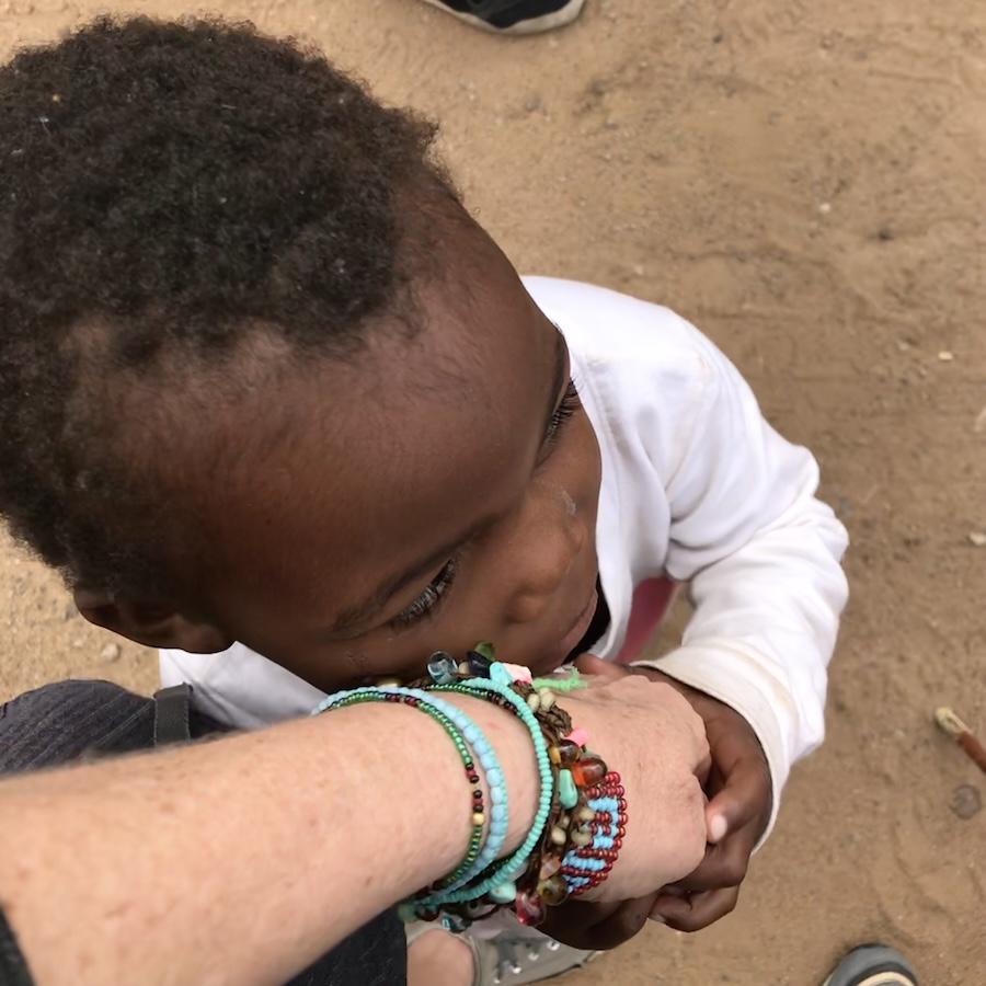 We were just invited to dinner with Lost, his family and Rakim. Lost and I jumped on the donkey. The donkey seemed tiny compared to the camel but he was nimble and maneuvered along the rocky and dusty desert trails, passing long abandoned caves carved into the surrounding sandstone formations. We embarked on a journey unknown (to us), a ride into the never ending desert, further and further away from the tourist sites, following paths carved into the rock and dirt by generations on hooves and feet. I see a structure ahead with a large patio. This is Grandmother’s cave, which seemed like a palace, a profound dwelling, quite tall and rectangular shaped, the sandstones gorgeous striped pattern encompassed the entirety. There was an opening but there was not a door. I could not see inside the dark space. Grandmother and several others (two children, two adults) were sitting on the patios rock floor with a platter of white liquid milk and goat meat. They were eating with their hands and spitting the bones out. Grandmother looked at us suspiciously. She did not speak English. I tried to be inconspicuous while I snapped photos on my phone. I was offered food. Lost had eagerly already started to eat. Chrissy was sitting as well. I sat down and picked up a small bit of goat. The strong smell of the gamey meat made my hand refuse to get more. G-ma was not convinced and was visibly wondering why we were there. She would skeptically glance over at me. Nevertheless the others were friendly and curious and made us feel welcome. One young male had what appeared to be a club foot and needed surgery which he would probably never receive. The young female was bright and all smiles. It was a moment of profound human connection, a reminder that travel’s true riches lie in these unexpected encounters and that we are all the same regardless of religion, economic status or the color of our skin.
